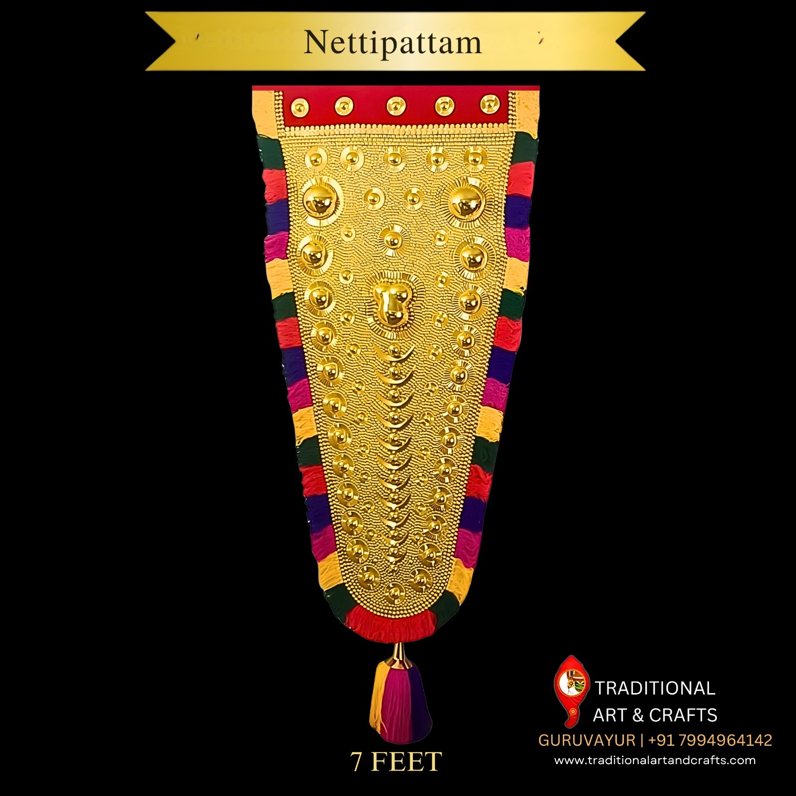 Wholesale dealers bring home the grandeur of Kerala’s temple art with our 7 Feet Traditional Nettipattam, handcrafted by skilled artisans. Perfect for temples, home décor, stage decoration, and cultural displays. Each piece reflects authentic craftsmanship, premium materials, and timeless elegance.