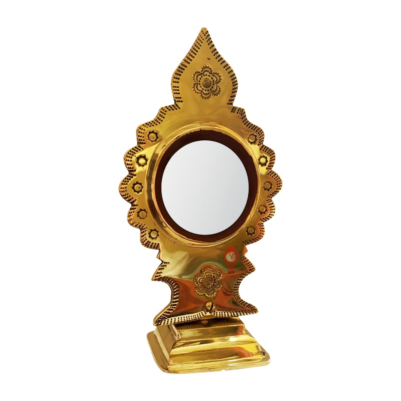 Aranmula Kannadi (Mettle Mirror), a handmade metal-alloy mirror, made in a small village in Kerala named Aranmula. It is a metal-alloy mirror or front surface reflection mirror, which also eliminates secondary reflections and aberrations to typical of the back surface of mirrors. The exacts used metals - alloy are maintained as a Vishwakarma family secret. Arenmula was now become popular for cultural and pilgrim tourism. The unique metal mirrors are the results of Kerala’s rich cultural and metallurgical traditions. Valkannadi have a great historical and cultural value and auspicious object are keep in houses for bringing prosperity and wealth. The origins of arenmula kanannadi are from Arenmula Parthasaradi temple. As per the tradition of Kerala arenmula kannadi are considered to be one of the eight auspicious item or”ashtamangalyam”. The extract used metals are mentioned as a Viswakarma family secret. Metallurgists suggest that the alloy is a mix of copper tin and silver