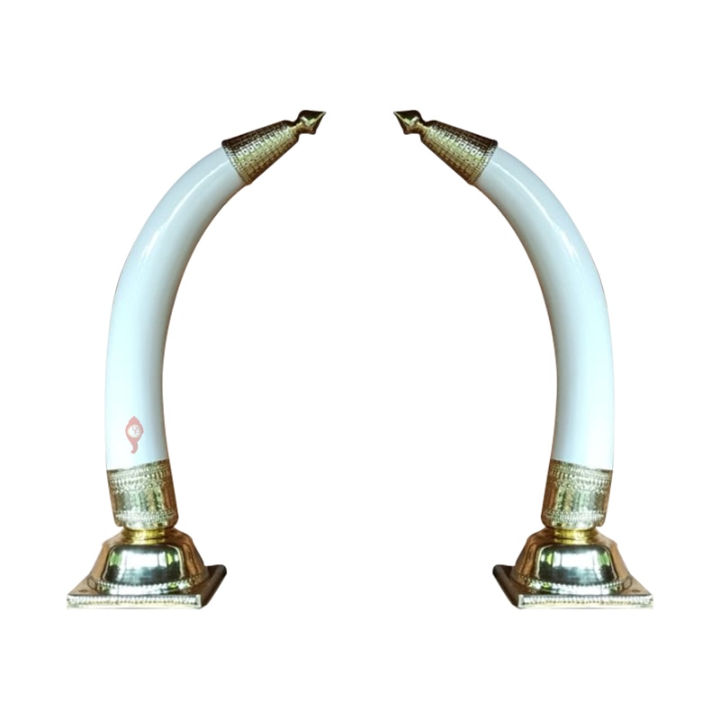 Ivory with brass covering is used in the traditional houses like royal families. Now original Ivory can't able to keep at homes. So most of the richest families are using Ivory by brass covering made with fiber. A fiber elephant tusk for home decor is an artistic representation of an elephant's tusk made from various natural or synthetic fibers. These pieces are often designed to mimic the shape and texture of a real tusk but are crafted in a way that is sustainable and cruelty-free. These fiber tusks can serve as a unique focal point in home decor, often placed on a mantel, hung on a wall, or displayed on a stand.