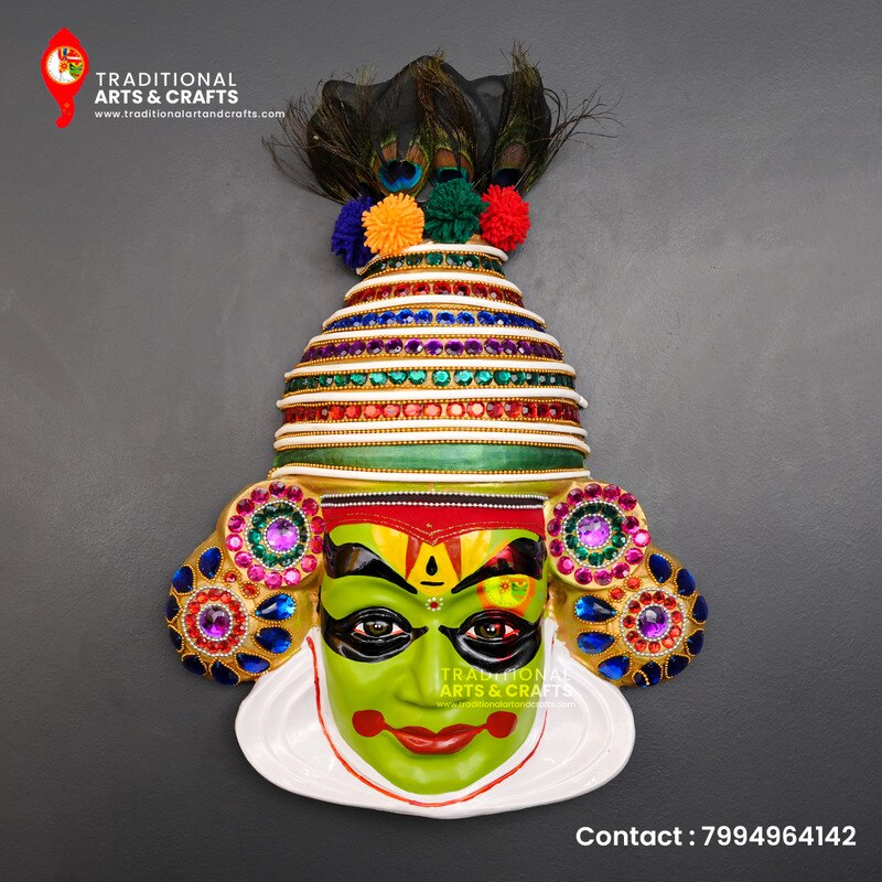 Traditional art and crafts makes all type of Beautifully hand-crafted and hand painted Fiber Kathakali Mask Wall Hanging decor. Kathakali is the most well known dance drama from the South India, Kerala. Kathakali wall hangings are popular wall hangings and are an essential ethnic gift item depicting the best of Indian Culture and Traditions. It gives the entire room or hall with one Kerala historical teach.