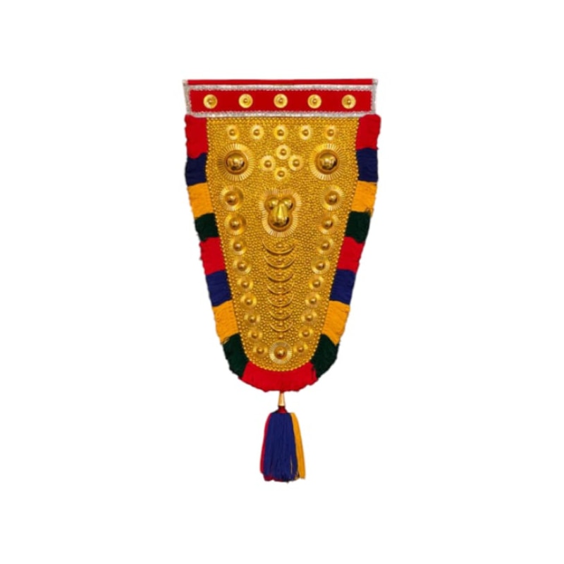 Nettipattam (Traditional Elephants Caparison in Malayalam നെറ്റിപ്പട്ടം) is a Kerala traditional handicraft, Which is used to decorate elephant in the time of festivals like pooram's. The gold colour of the Nettipattam makes its an eye-catching item during the Pooram festival. Different types of Nettipattam are available in our e-commerce Nettipattam is a glittering ornament and it adorns the forehead of an elephant. Earlier, Nettipattam was only used during festivals. In Kerala, elephants are decorated during the temple festivals. They wear a distinctive the golden head covering called a nettipattam, which is often translated into English as an elephant caparison. Legend has tells that the Nettipattam was designed by Lord Brahma. Iravath, the white elephant of Lord Indra Baghavan, was the first lucky elephant to wear Nettipattam It represents the entire pantheon of gods in Hinduism. Each bubble depicts Pancha-bhoothas Thrimoorthies, Navagrahas, Ashta-vasus, Saptarishis, Moola Ganapathi etc. So people believe that Nettipattam brings prosperity, peace and blessings. Nettipattam or Elephant caparisons is an essential item to decorate modern and traditional South Indian interior design. Customs and traditions of our country add glory to culture of our great nation . Temples , Rituals, Festivals, ultsavams , are the part the life of all Indians. Indians in every corner of the world have nostalgic memories of their country. So these handicrafts items like Nettipattam gives our guest rooms to create such an atmosphere in our visiting room or living rooms . Even the present generation who are unfamiliar with our tradition can get in touch with the culture of our country. Nettipattam is made with copper and pure gold is plating in it. Electro plated fibre Nettipattam is using for wall hanging. It is a trend to use it as a wall hangings in different sizes. Here we are offering you the Fiber Nettipattam with all its traditional scientific aspects. Nettipattam – Elephant caparison is not just a decoration. It is a great temple housing thirty three crore deities. Each of the golden orbs(beads) are the symbols and it represent different concept of God. Moolaganapati, Trimurtis, Saraswati, Lakshmi, Parvati, Sapta Rishis, Vishwamitra, Vishwakarma, Navagrahas and Ashtavasus. Moonbeams (Chandrakala) represents Sivasankalpa. According to the Vedas, 33 types of deities are worshiped by those who believe in Sanatana Dharma. Those deities are 12 Adityas, 11 Rudras, Ashtavasus, Indra and Prajapati. Adityas are 12 solar months and 12 levels of social life. The Ashtavasus are the 8 root deities who represent the different levels of nature. As per your preference, the vibrant brows are completely handcrafted in different sizes. You can select it as per your spice and size suitable for home or institutions. Contact us for quality original turbans (Elaphant caparison) and wall hanging nettipattams Earlier, Nettipattam was only used during festivals only. Today, it is a trend to use it as wall hangings in different sizes. The Traditional Nettipattam is made in copper and pure gold is plating in it. Now plastic & fibre Nettipattam's are available in market. Here we are offering you the Fiber Nettipattam from traditional crafts man in God's own country. It is ideal to be used in offices, homes and is also ideal to be presented as a gift to dear ones. The materials required are jute material, Jagathnath cloth (thick cotton cloth locally called), leather forms and the red cotton cloth material cut to the forehead length and width. Wholesale and Retail Available, and we can send it by courier to all over the world