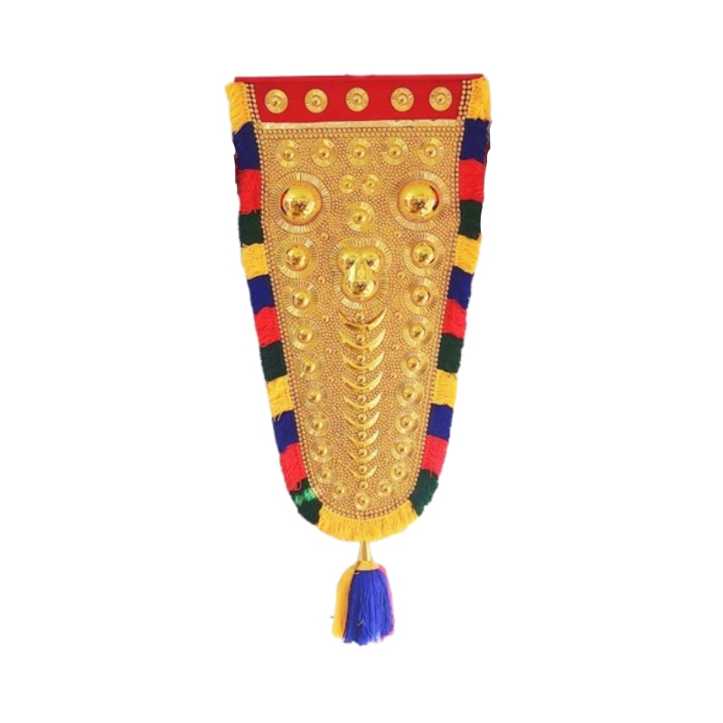 Nettipattam (Traditional Elephants Caparison in Malayalam നെറ്റിപ്പട്ടം) is a Kerala traditional handicraft, Which is used to decorate elephant in the time of festivals like pooram's. The gold colour of the Nettipattam makes its an eye-catching item during the Pooram festival. Different types of Nettipattam are available in our e-commerce Nettipattam is a glittering ornament and it adorns the forehead of an elephant. Earlier, Nettipattam was only used during festivals. In Kerala, elephants are decorated during the temple festivals. They wear a distinctive the golden head covering called a nettipattam, which is often translated into English as an elephant caparison. Legend has tells that the Nettipattam was designed by Lord Brahma. Iravath, the white elephant of Lord Indra Baghavan, was the first lucky elephant to wear Nettipattam It represents the entire pantheon of gods in Hinduism. Each bubble depicts Pancha-bhoothas Thrimoorthies, Navagrahas, Ashta-vasus, Saptarishis, Moola Ganapathi etc. So people believe that Nettipattam brings prosperity, peace and blessings. Nettipattam or Elephant caparisons is an essential item to decorate modern and traditional South Indian interior design. Customs and traditions of our country add glory to culture of our great nation . Temples , Rituals, Festivals, ultsavams , are the part the life of all Indians. Indians in every corner of the world have nostalgic memories of their country. So these handicrafts items like Nettipattam gives our guest rooms to create such an atmosphere in our visiting room or living rooms . Even the present generation who are unfamiliar with our tradition can get in touch with the culture of our country. Nettipattam is made with copper and pure gold is plating in it. Electro plated fibre Nettipattam is using for wall hanging. It is a trend to use it as a wall hangings in different sizes. Here we are offering you the Fiber Nettipattam with all its traditional scientific aspects. Nettipattam – Elephant caparison is not just a decoration. It is a great temple housing thirty three crore deities. Each of the golden orbs(beads) are the symbols and it represent different concept of God. Moolaganapati, Trimurtis, Saraswati, Lakshmi, Parvati, Sapta Rishis, Vishwamitra, Vishwakarma, Navagrahas and Ashtavasus. Moonbeams (Chandrakala) represents Sivasankalpa. According to the Vedas, 33 types of deities are worshiped by those who believe in Sanatana Dharma. Those deities are 12 Adityas, 11 Rudras, Ashtavasus, Indra and Prajapati. Adityas are 12 solar months and 12 levels of social life. The Ashtavasus are the 8 root deities who represent the different levels of nature. As per your preference, the vibrant brows are completely handcrafted in different sizes. You can select it as per your spice and size suitable for home or institutions. Contact us for quality original turbans (Elaphant caparison) and wall hanging nettipattams Earlier, Nettipattam was only used during festivals only. Today, it is a trend to use it as wall hangings in different sizes. The Traditional Nettipattam is made in copper and pure gold is plating in it. Now plastic & fibre Nettipattam's are available in market. Here we are offering you the Fiber Nettipattam from traditional crafts man in God's own country. It is ideal to be used in offices, homes and is also ideal to be presented as a gift to dear ones. The materials required are jute material, Jagathnath cloth (thick cotton cloth locally called), leather forms and the red cotton cloth material cut to the forehead length and width. Wholesale and Retail Available, and we can send it by courier to all over the world