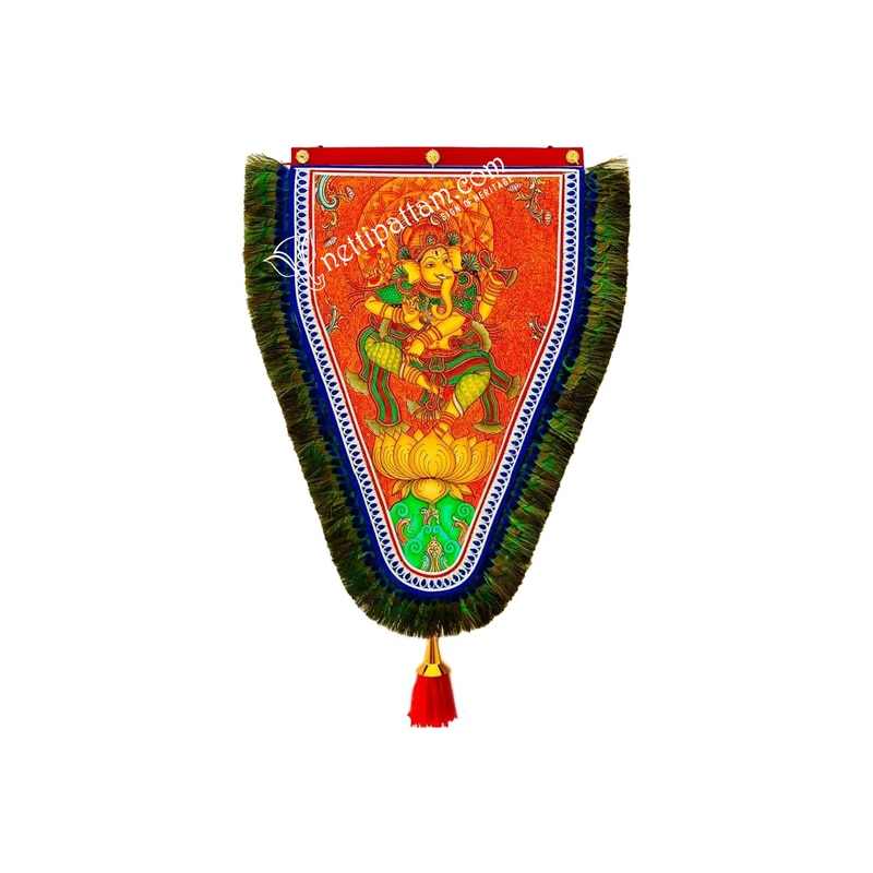 Nettipattam With Mural Paint Online/Hand Made Elephant Caparison Home Decor Introducing a beautiful Nettipattam with mural paint, handcrafted by experienced artisans at Traditional arts and crafts This traditional elephant caparison brings a royal look to your home and preserves ancient traditions, showcasing devotion. Handmade Craftsmanship: Each Nettipattam is crafted with great care and attention by highly trained artisans to ensure durability and authenticity. Traditional Materials: Made with gold plating and copper, the Nettipattam maintains the traditional methods and materials used for centuries.